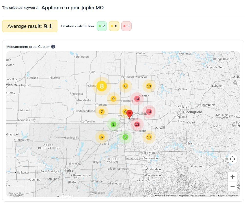 Map Ranking (Appliance Repair Joplin MO): 16.1 → 9.1 average position across 13 locations