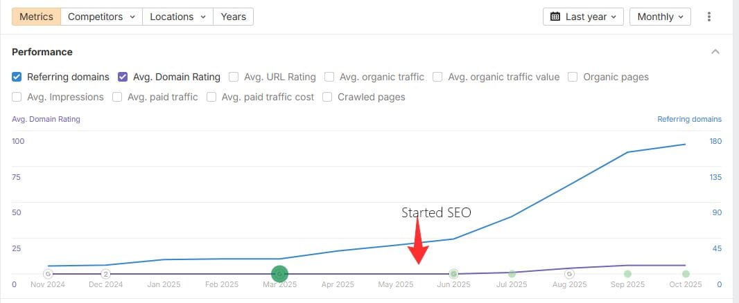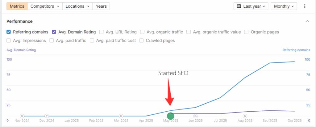Steadily increased backlinks and citations to raise the site’s Domain Rating and local trust.