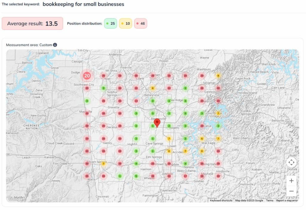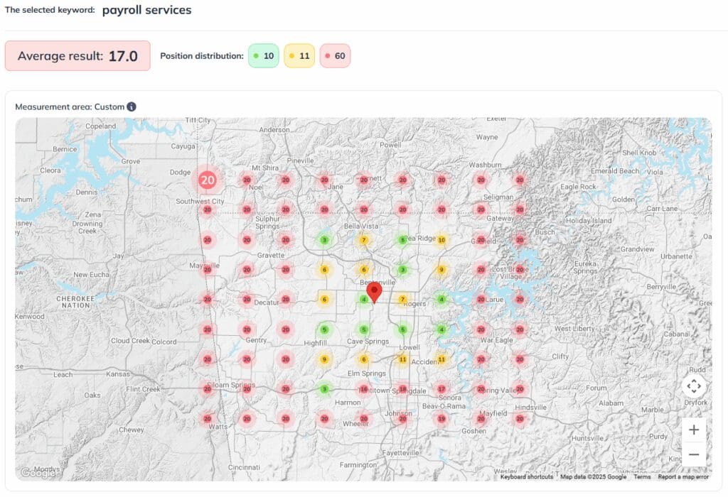 Set a focused 10-mile map radius to strengthen rankings within the heart of Northwest Arkansas.