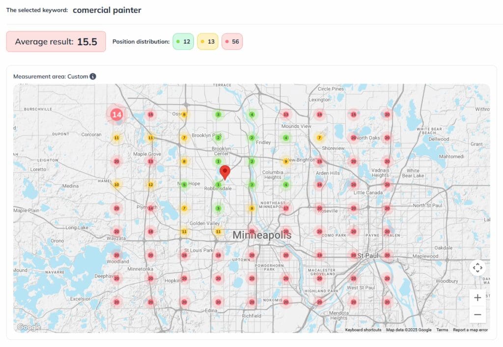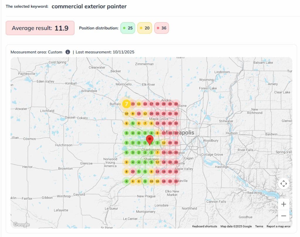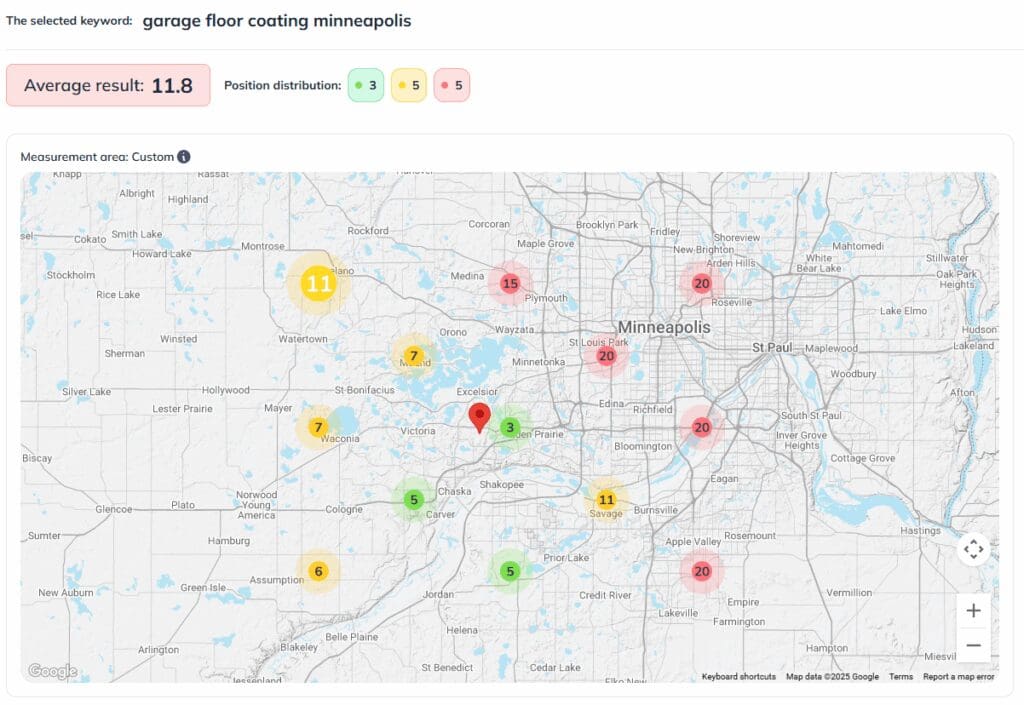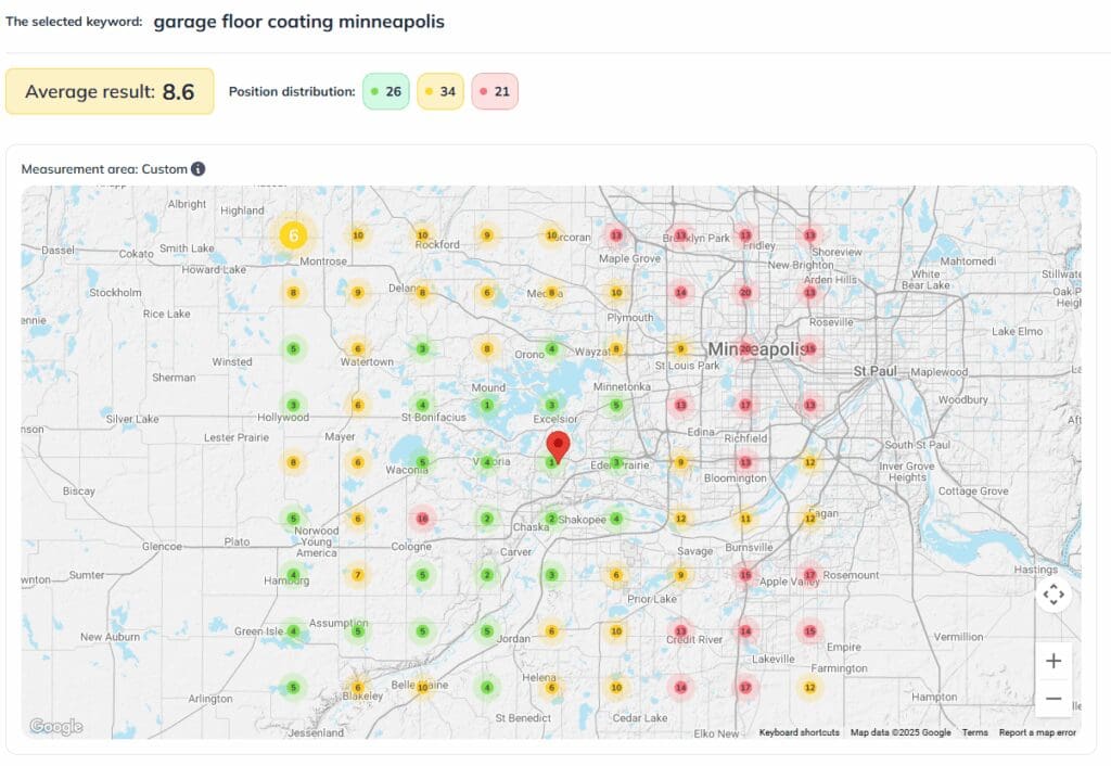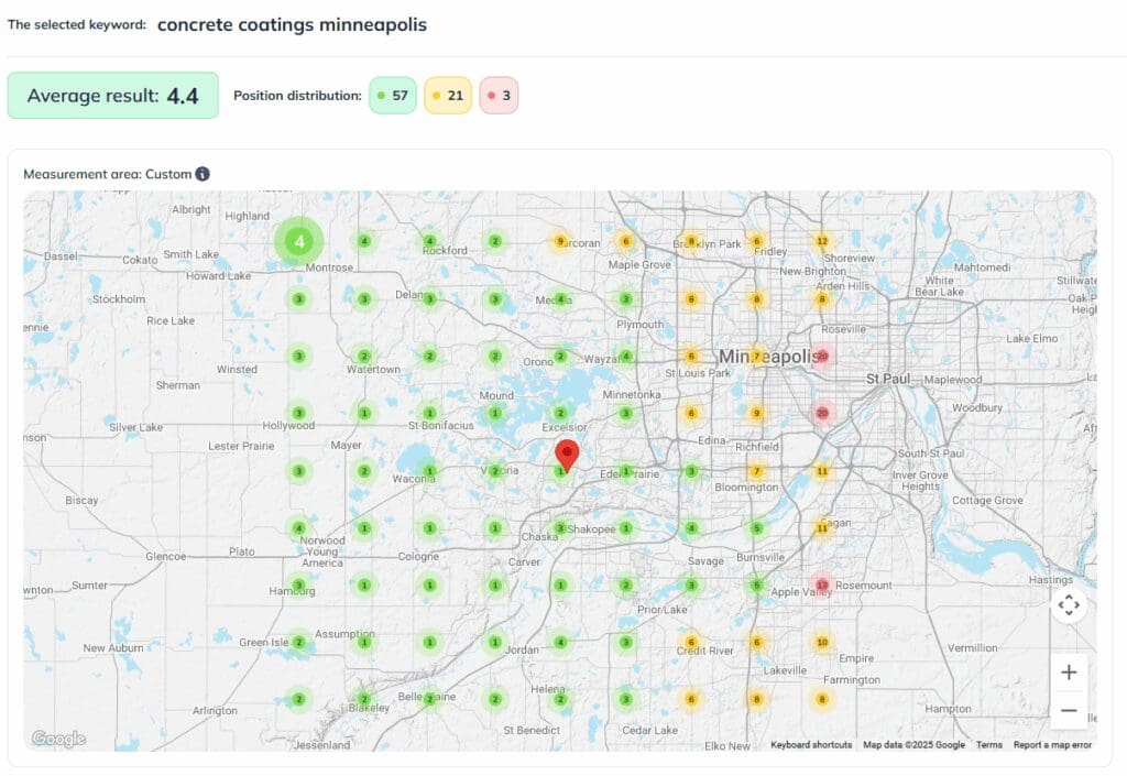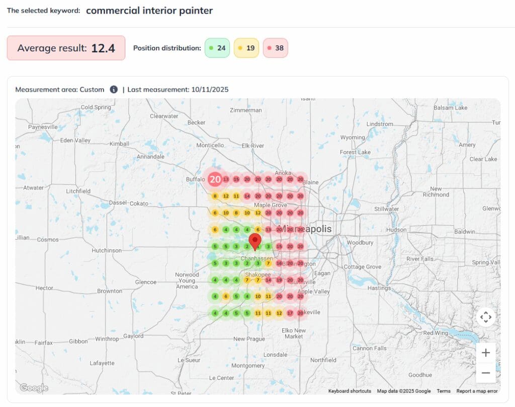 The client now ranks competitively across both Minneapolis metro and expanded surrounding areas, with visibility continuing to grow month-over-month.