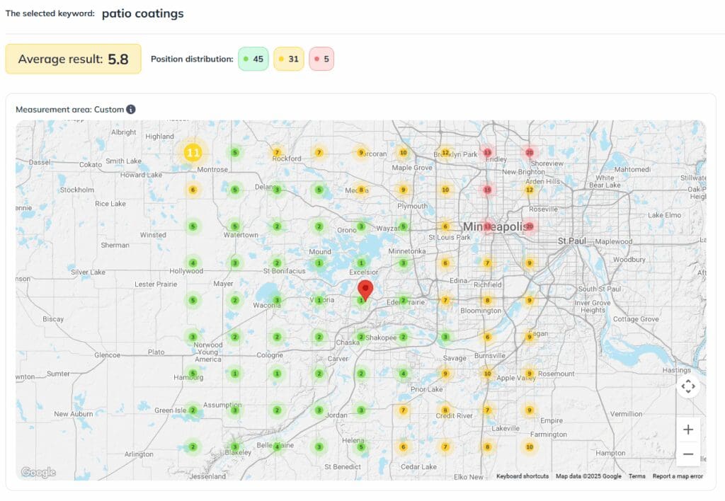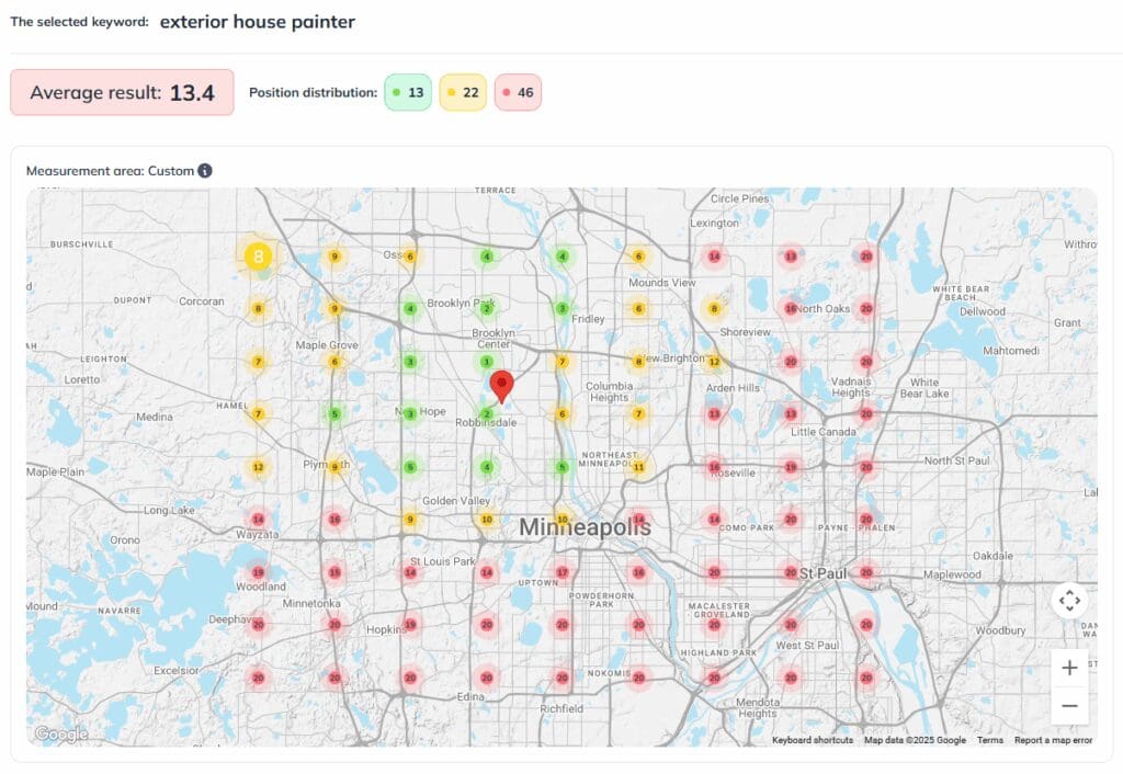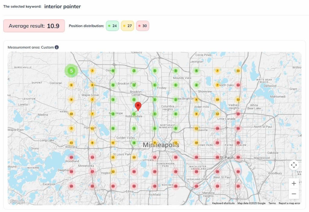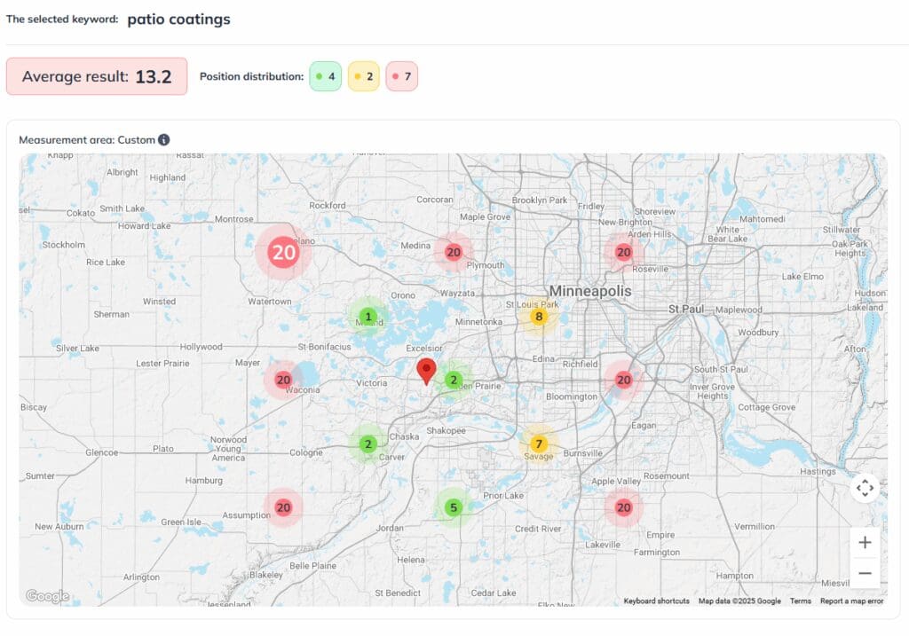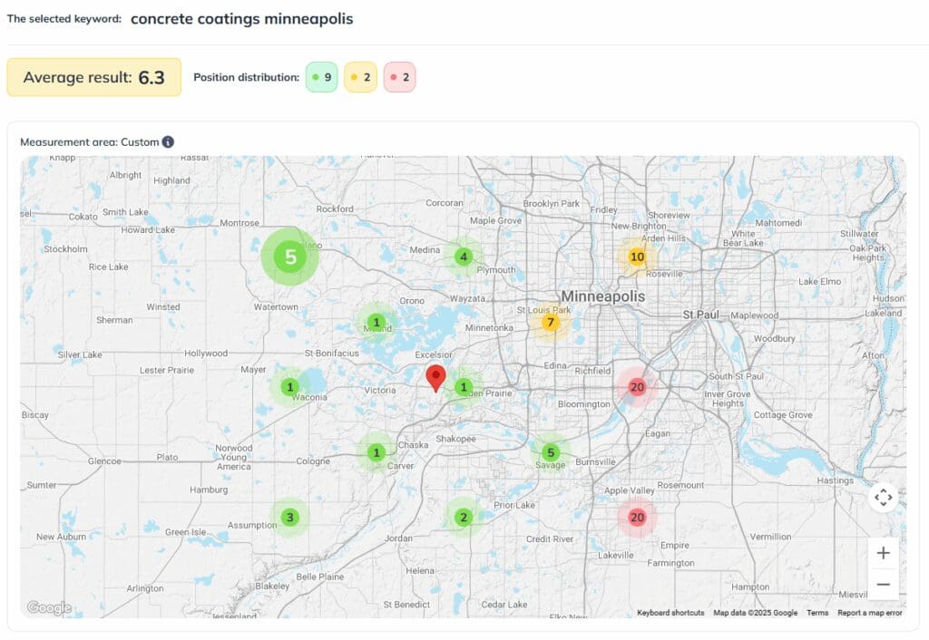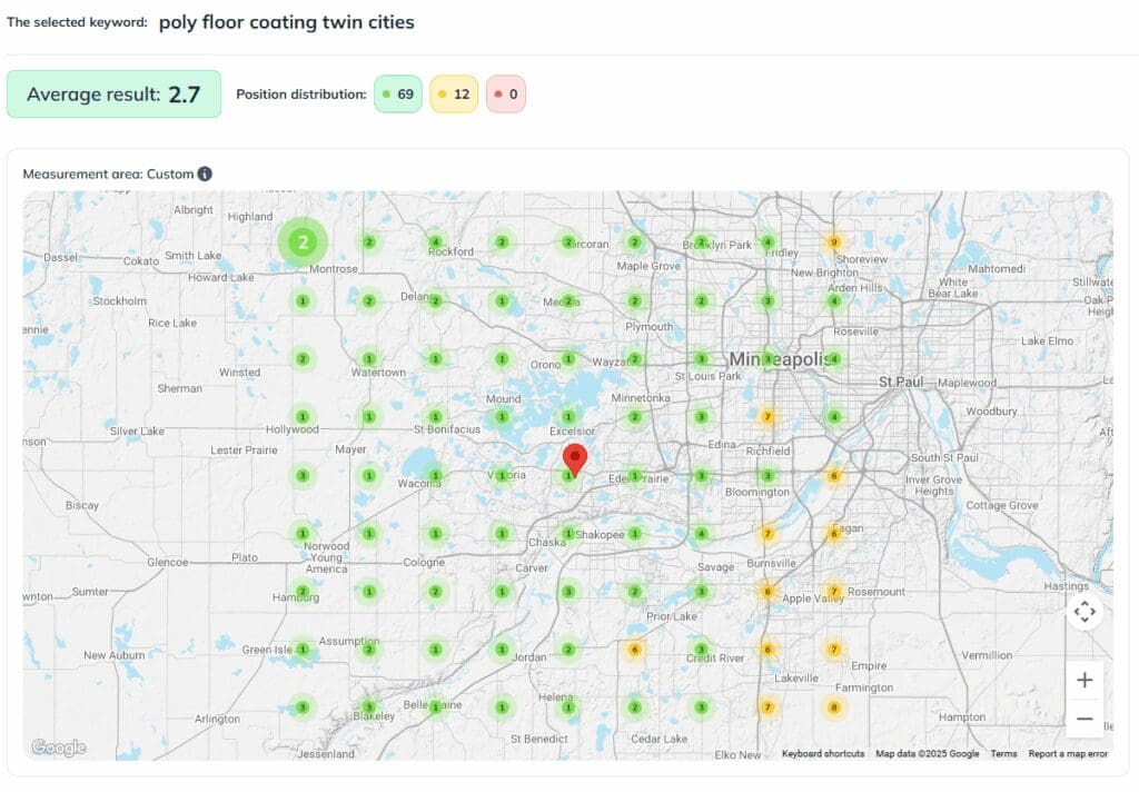The client now ranks competitively across both Minneapolis metro and expanded surrounding areas, with visibility continuing to grow month-over-month.