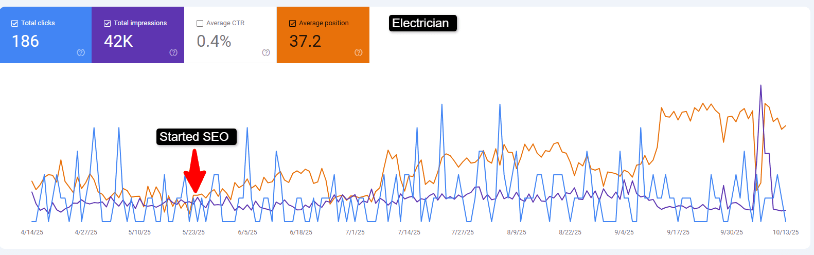 Because this was a new, small business, the goal wasn’t aggressive expansion, it was steady, visible progress across key electrical categories while building a trustworthy online presence.